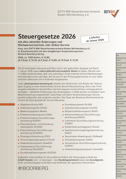 hrsg. vom DSTV-BW Steuerberaterverband Baden-Württemberg e.V. in Zusammenarbeit mit dem langjährigen Kooperationspartner Richard Boorberg Verlag